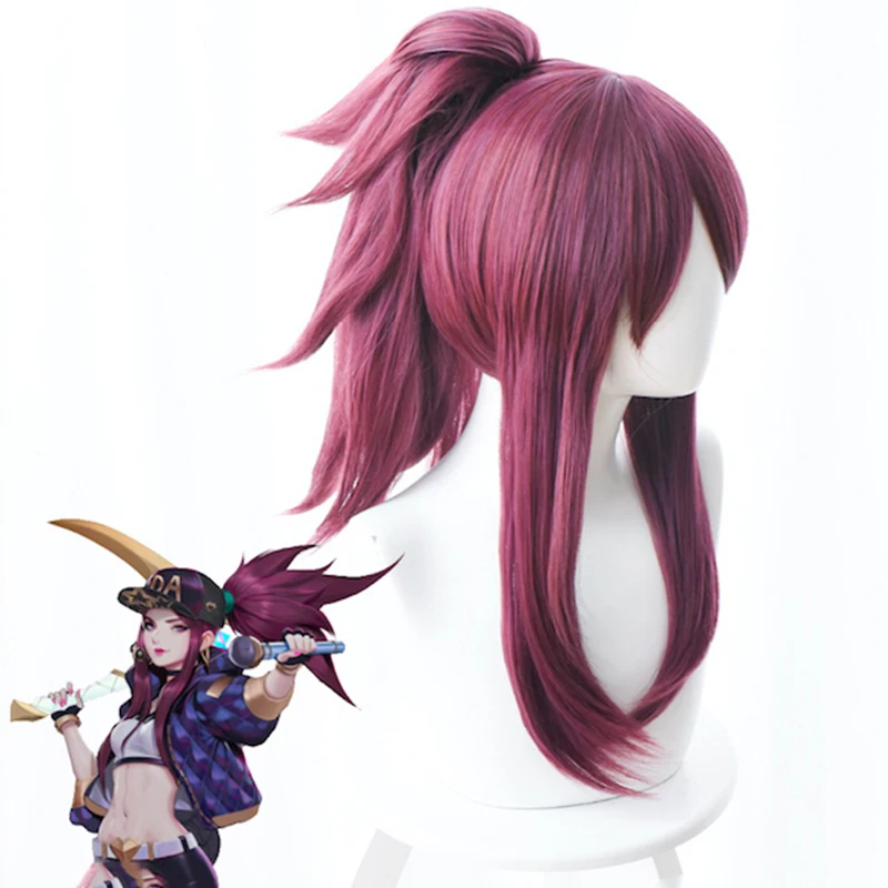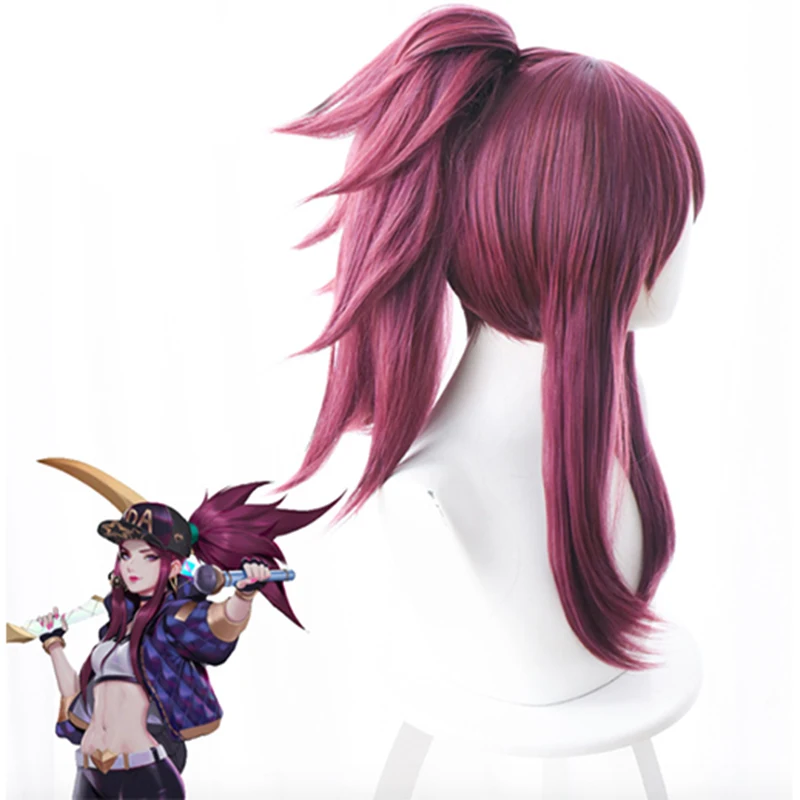 Game LOL KDA Akali Cosplay Wigs New Style The Rogue Assassin Women Hair Explosion Turned Horse Tail