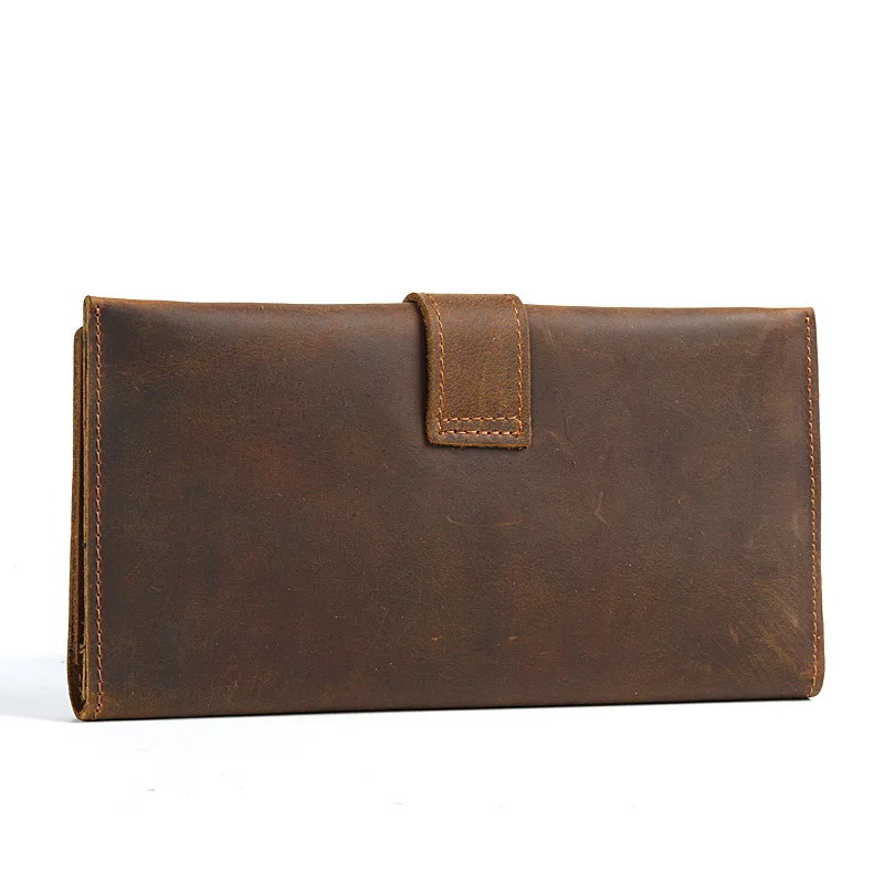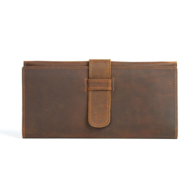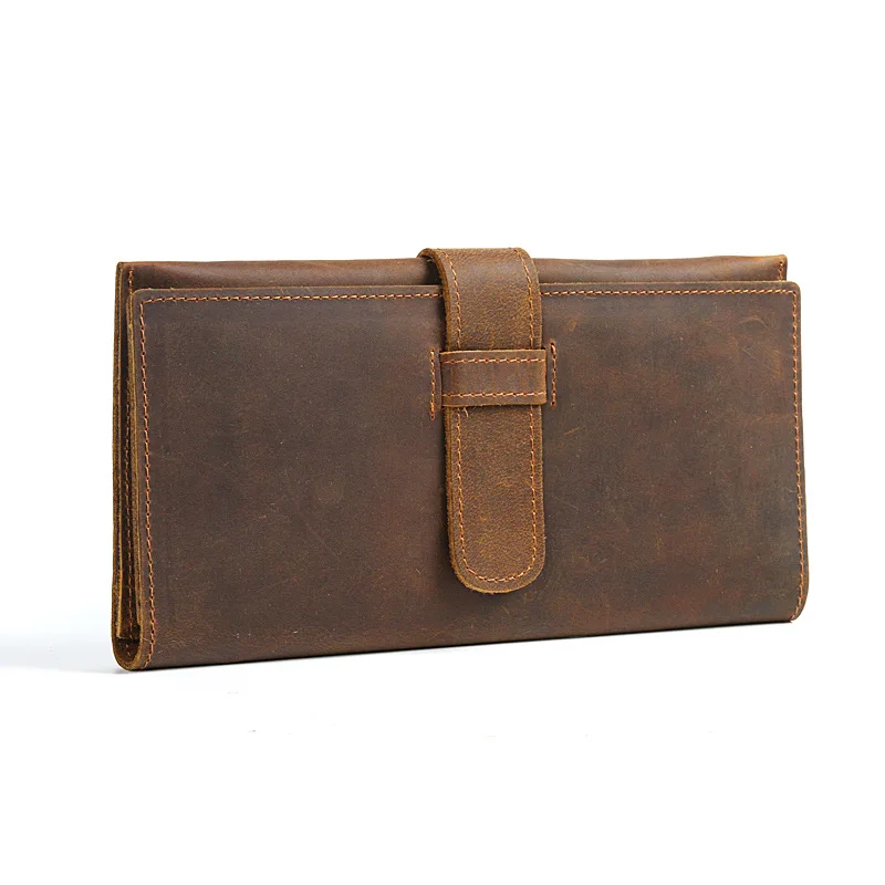 HOT SALE Horse Leather MEN'S Wallet Long Pull-belt Retro Cool Genuine Leather Wallet