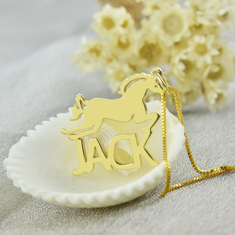HIGH QUALITY AILIN Gold Color Horse Necklace with Cut Out Name Necklace Personalized Name Jewelry Horse Lover Gi
