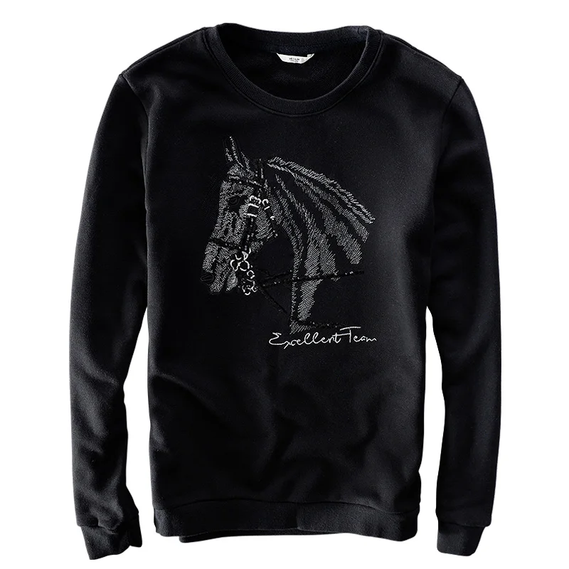 HOT SALE Spanish brand mens hoodies horse embroidery sweatshirt men fashion personality long-sleeved hoodie