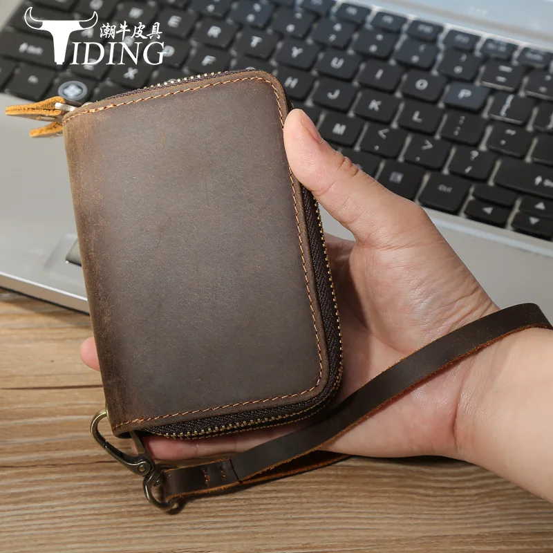 REVIEW TOP SELLER Tiding Hot Selling Genuine Leather Double Layer Zipper Multi-Compartment Wallet Women's Vintage Hor