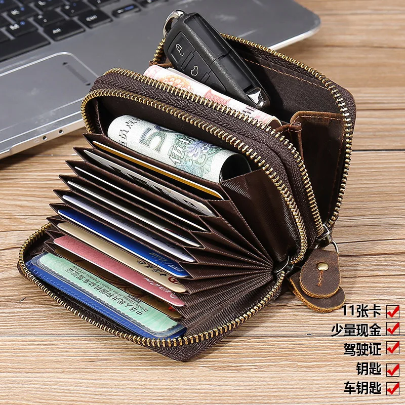 ORIGINAL Tiding Hot Selling Genuine Leather Double Layer Zipper Multi-Compartment Wallet Women's Vintage Hor