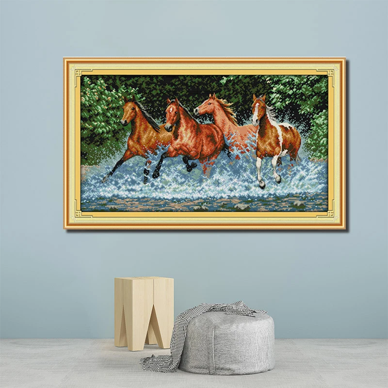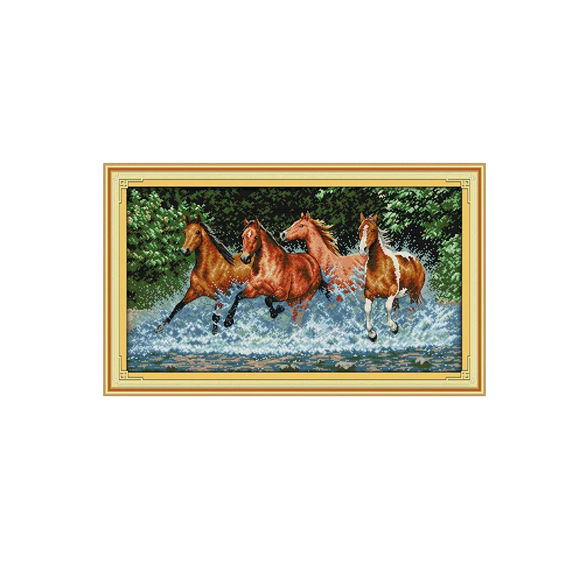 Joy Sunday Cross Stitch Kit DIY Several horses running in the water Pattern Printed Chinese Embroid