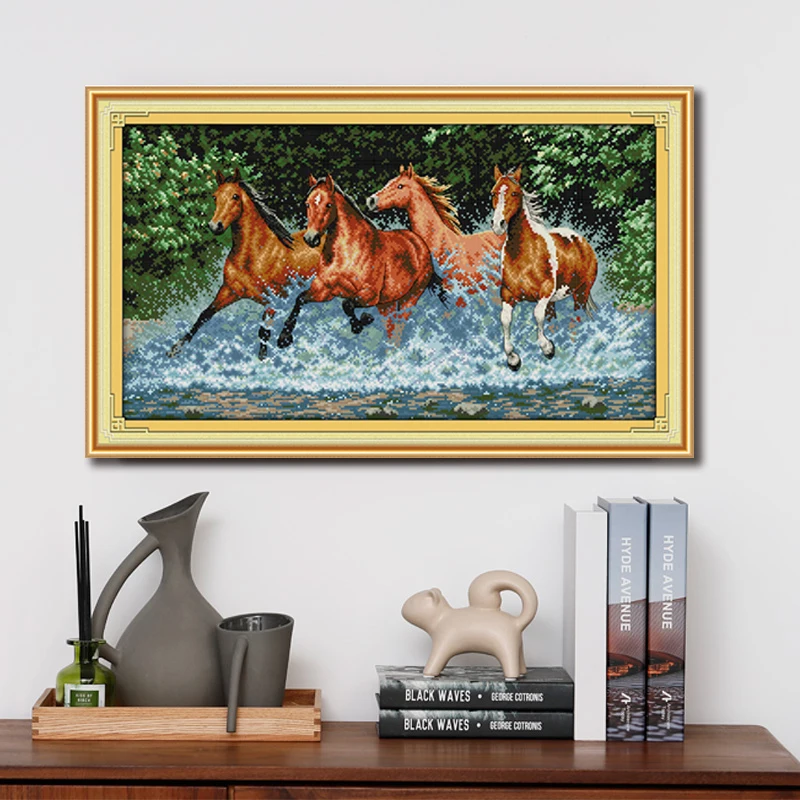 BEST Joy Sunday Cross Stitch Kit DIY Several horses running in the water Pattern Printed Chinese Embroid