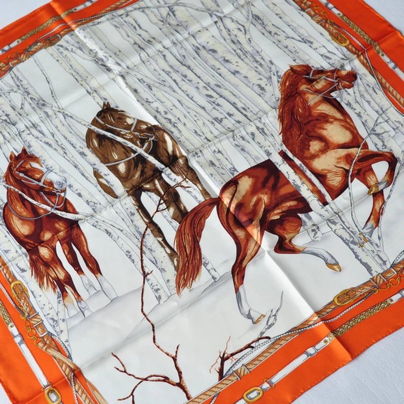 Jungle Horse Print Large Square Silk Scarf Shawl Women 100% Silk Twill Scarves Wraps High Style Han